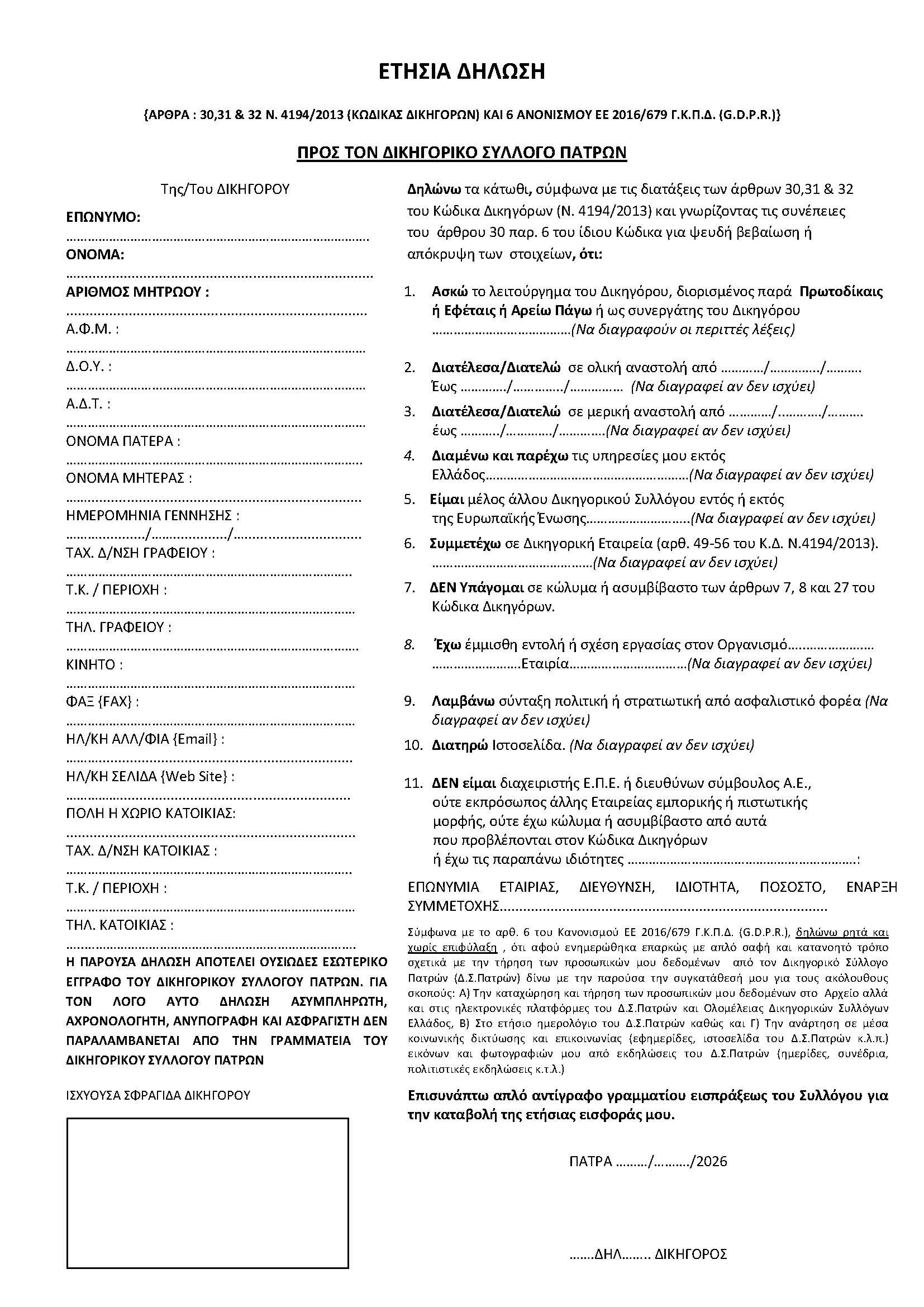 ΕΤΗΣΙΑ ΔΗΛΩΣΗ ΔΙΚΗΓΟΡΟΥ